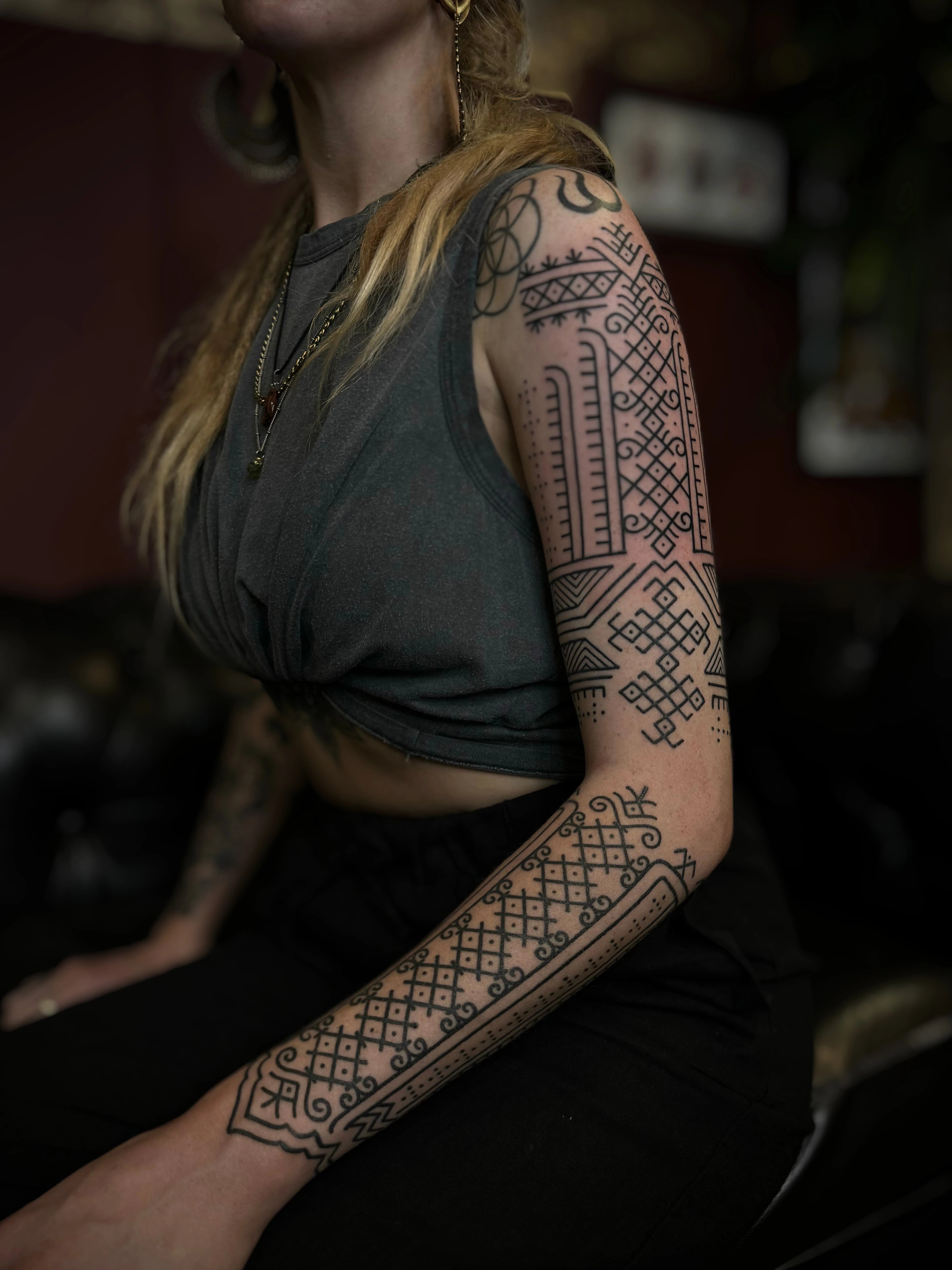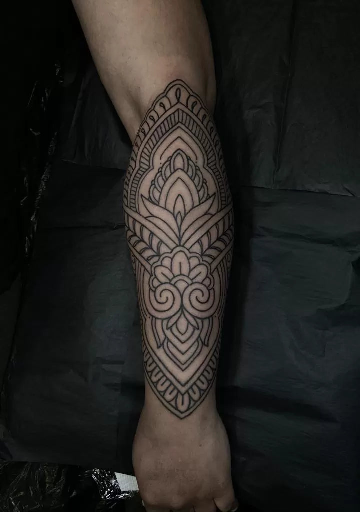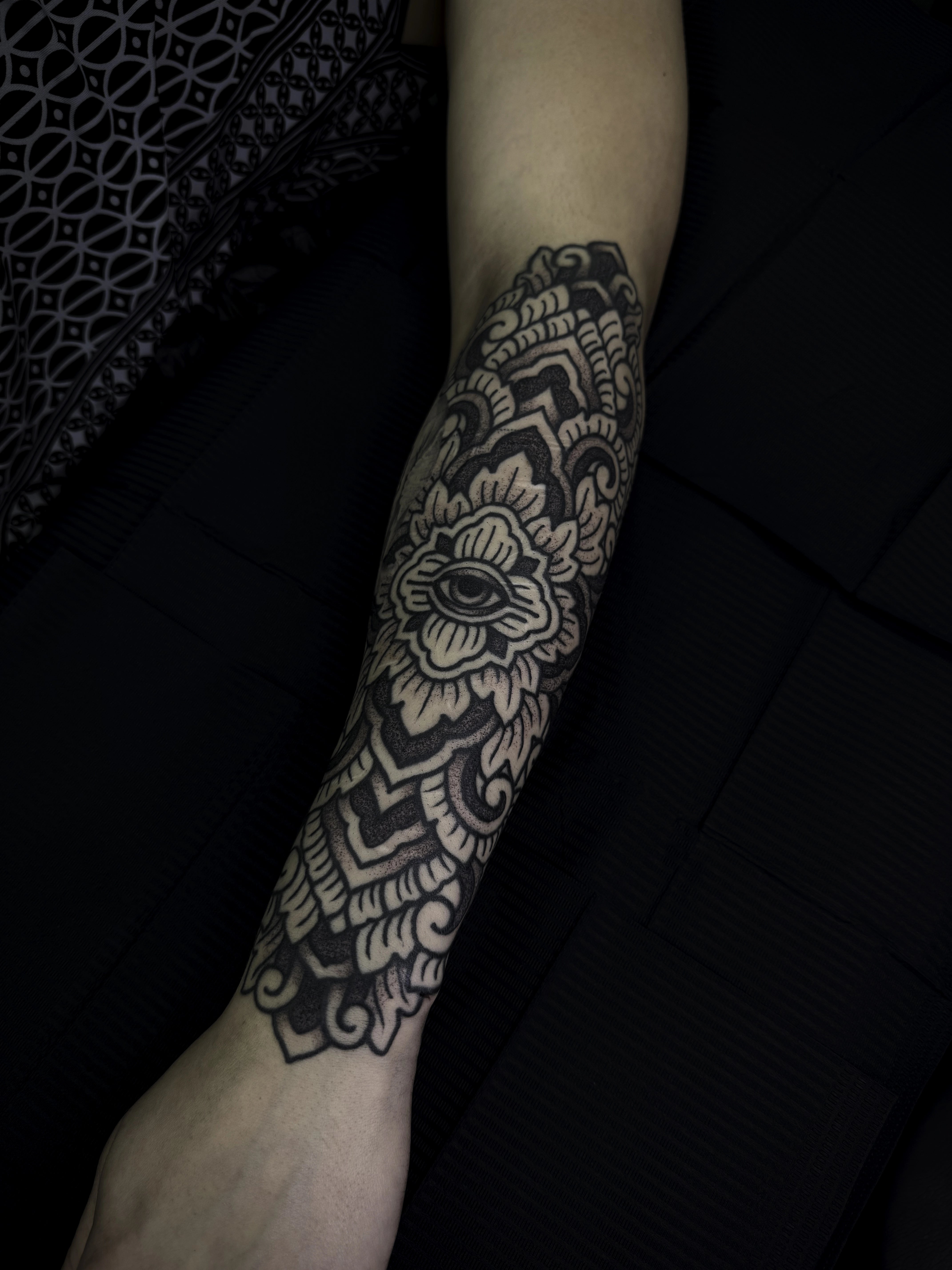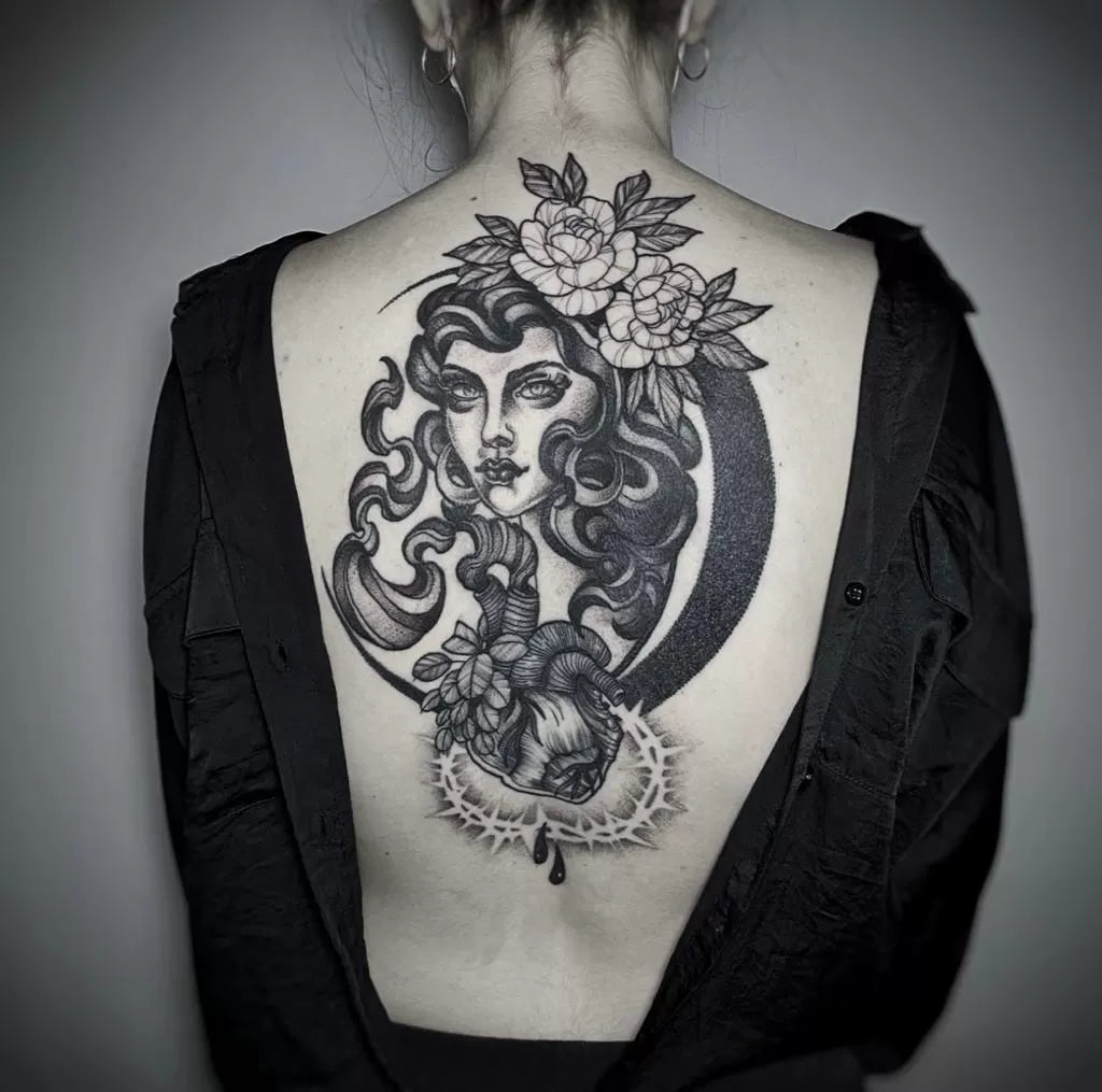 Maria is renowned for her exceptional skill in illustrative blackwork tattoos and ornamental designs. With a deep commitment to hard work, dedication, and continuous learning, she pours her passion and curiosity into every piece of art she creates.