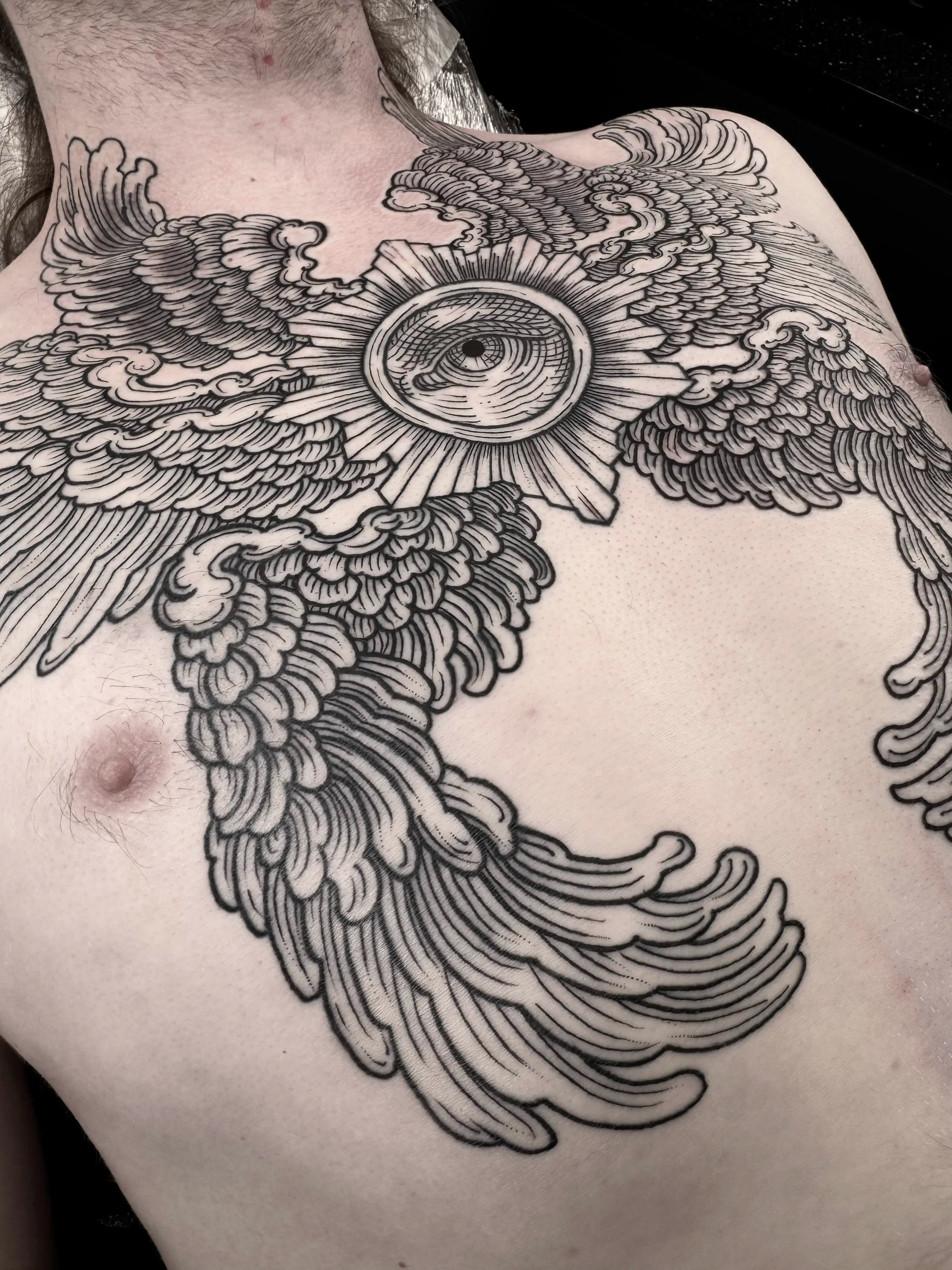 - Masterful illustrative blackwork techniques