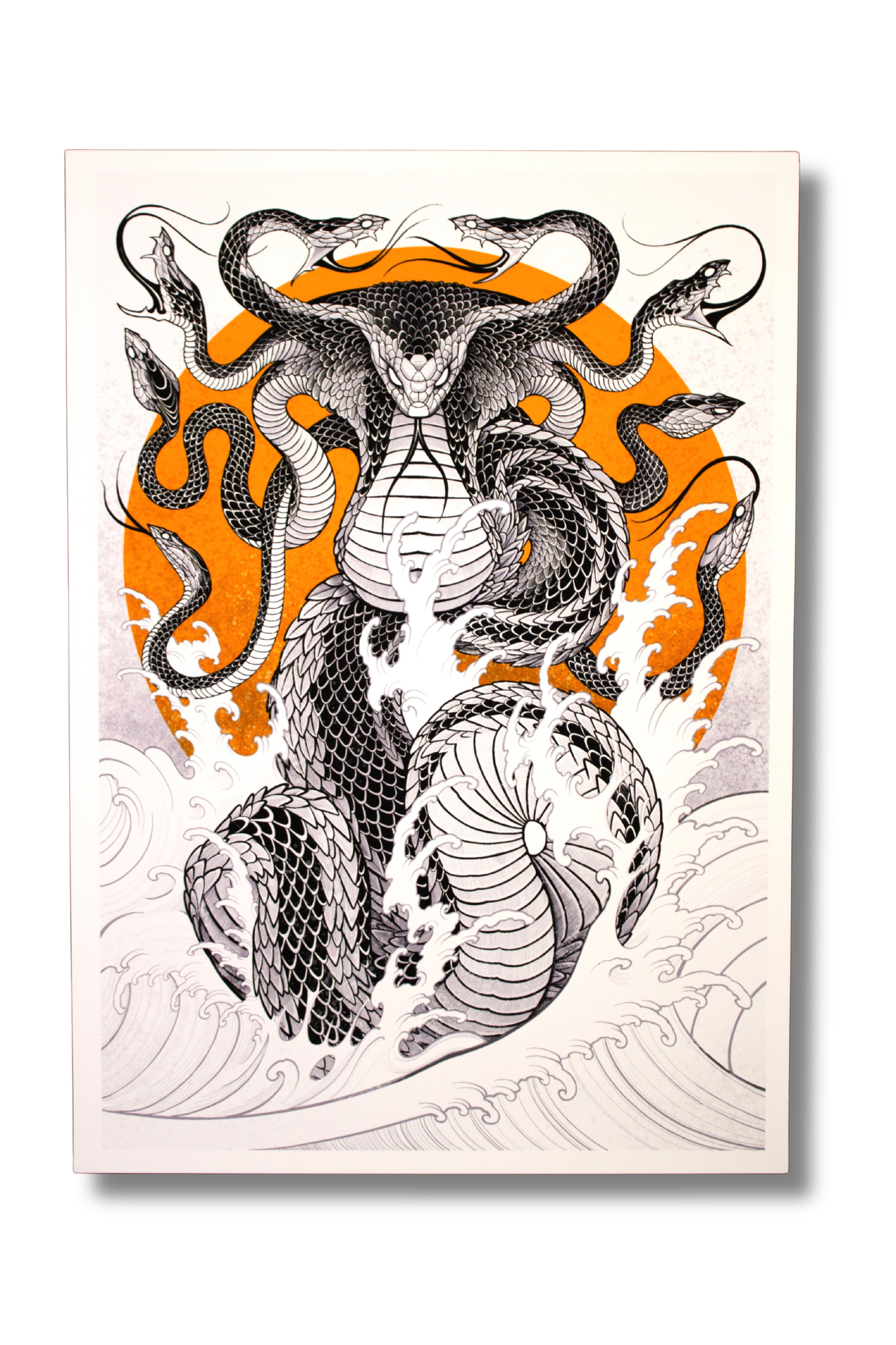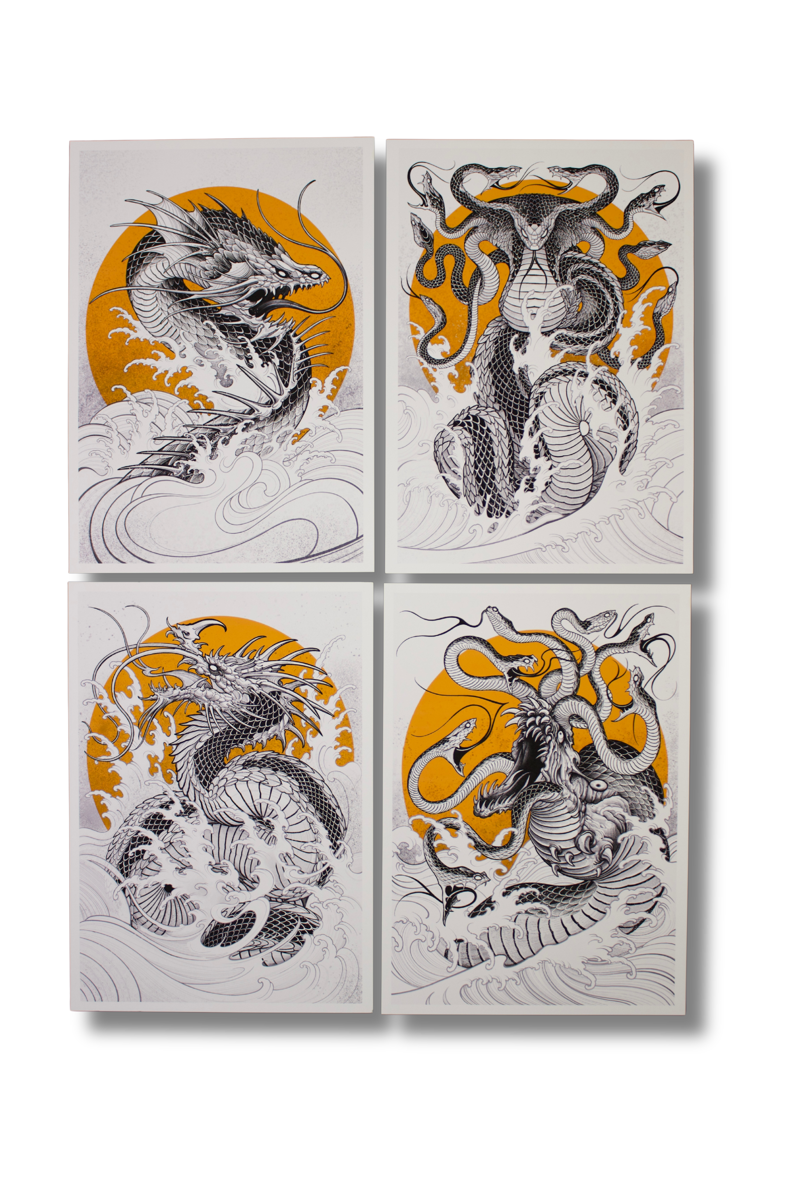 Originally sold as a four-print boxset in 2020 now reprinted and sold separately for the first time. The collection is composed of four different serpent-like sea beasts rising from the depths of the deep ocean realm.